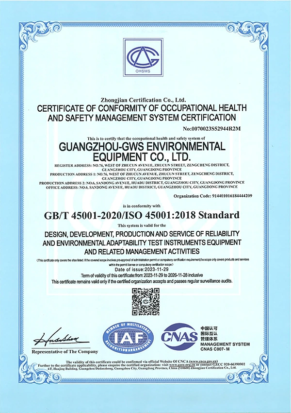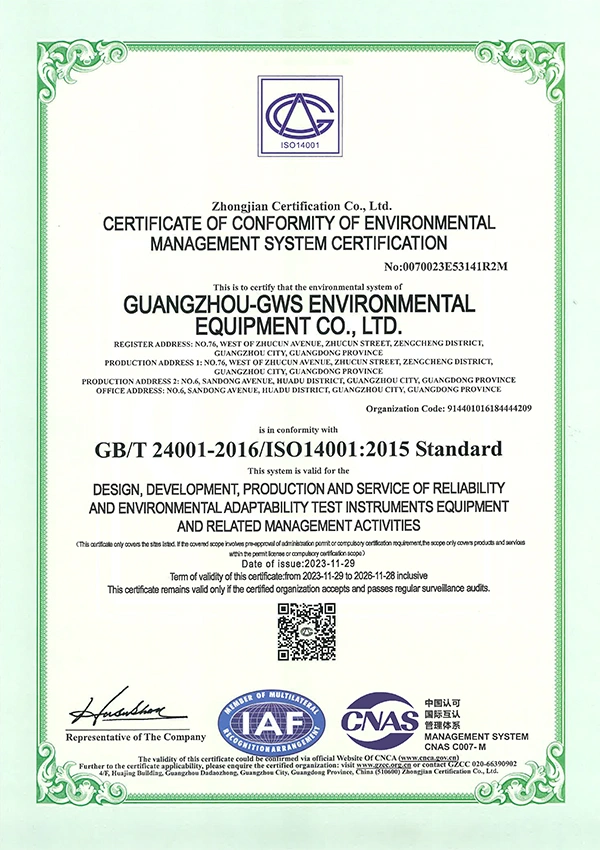 Cada cámara y sistema de vibración pasa por estrictos controles antes de ser enviado. Esto incluye pruebas de rendimiento de los componentes clave, verificaciones de seguridad y un proceso de envejecimiento acelerado de 48 horas. Gracias a herramientas de medición de última generación y sistemas de gestión propios, podemos monitorear cada etapa de la inspección y recopilar datos automáticamente, asegurando que todos nuestros equipos cumplan con los estándares más exigentes de confiabilidad. - ¿Cómo destaca GWS en la industria de pruebas ambientales?