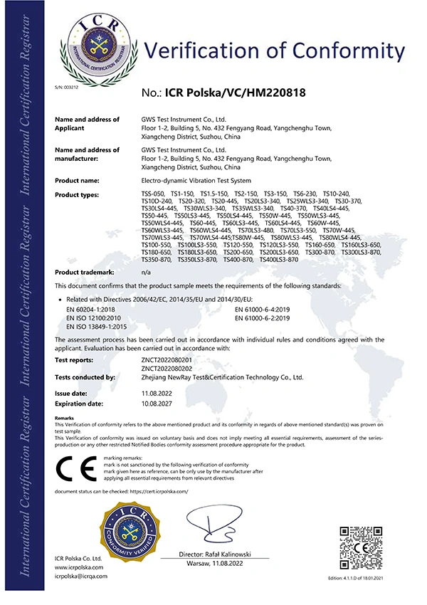 GWS es una empresa especializada en crear soluciones de vanguardia en equipos electrodinámicos para pruebas de vibración. Tenemos tecnologías propias y patentes en control de pruebas, optimización de rendimiento y diseño estructural. Nuestra variedad de productos incluye vibradores refrigerados por aire o agua, capaces de generar movimientos verticales, horizontales o combinados. Con fuerzas que van desde 500 N (50 kg) hasta 600 kN (60 toneladas), nuestros sistemas se adaptan tanto a laboratorios estándar como a entornos de investigación y producción, ofreciendo soluciones personalizadas según cada necesidad. Generalmente son uilizados en la validación de componentes automotrices, pruebas de confiabilidad aeroespacial, calificación de dispositivos electrónicos y otras aplicaciones industriales.